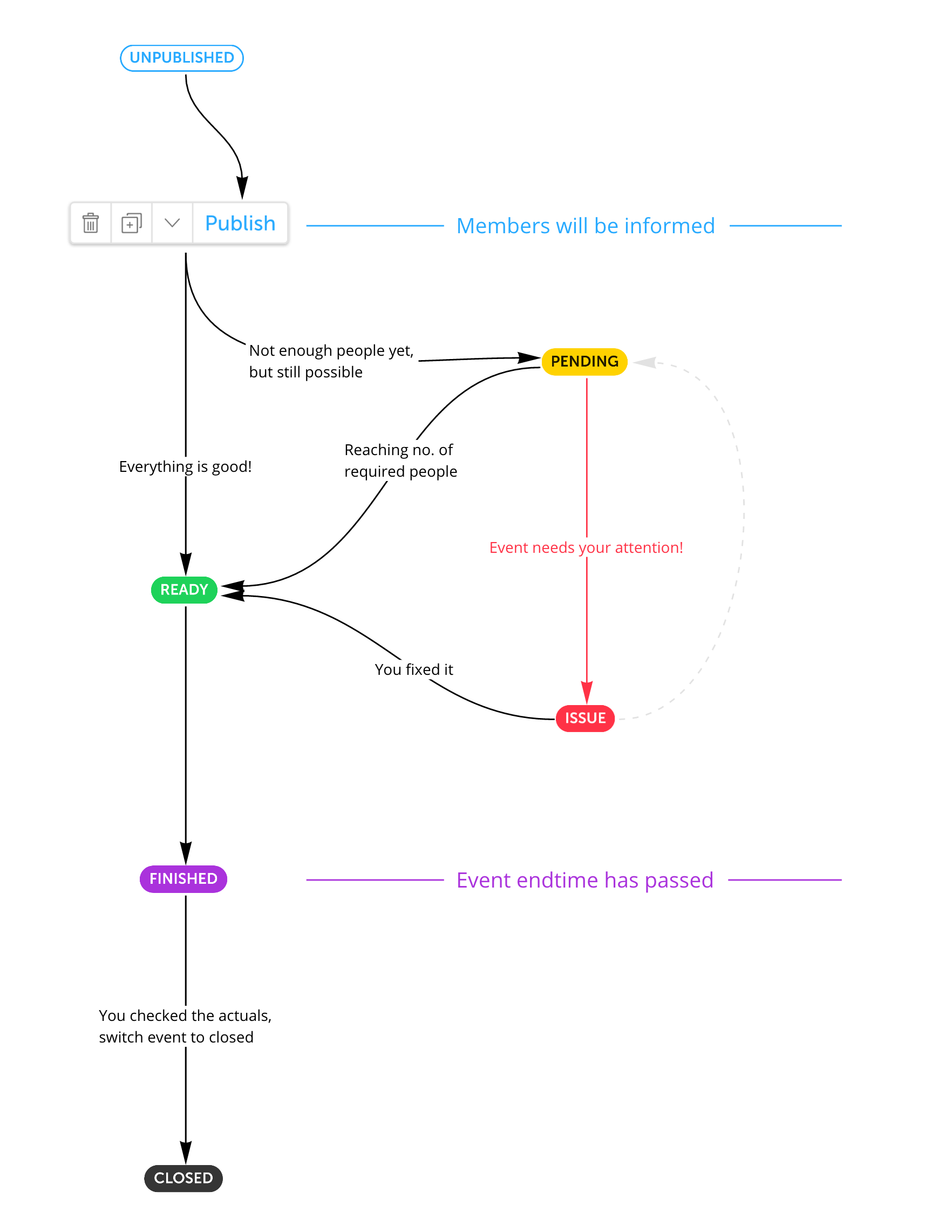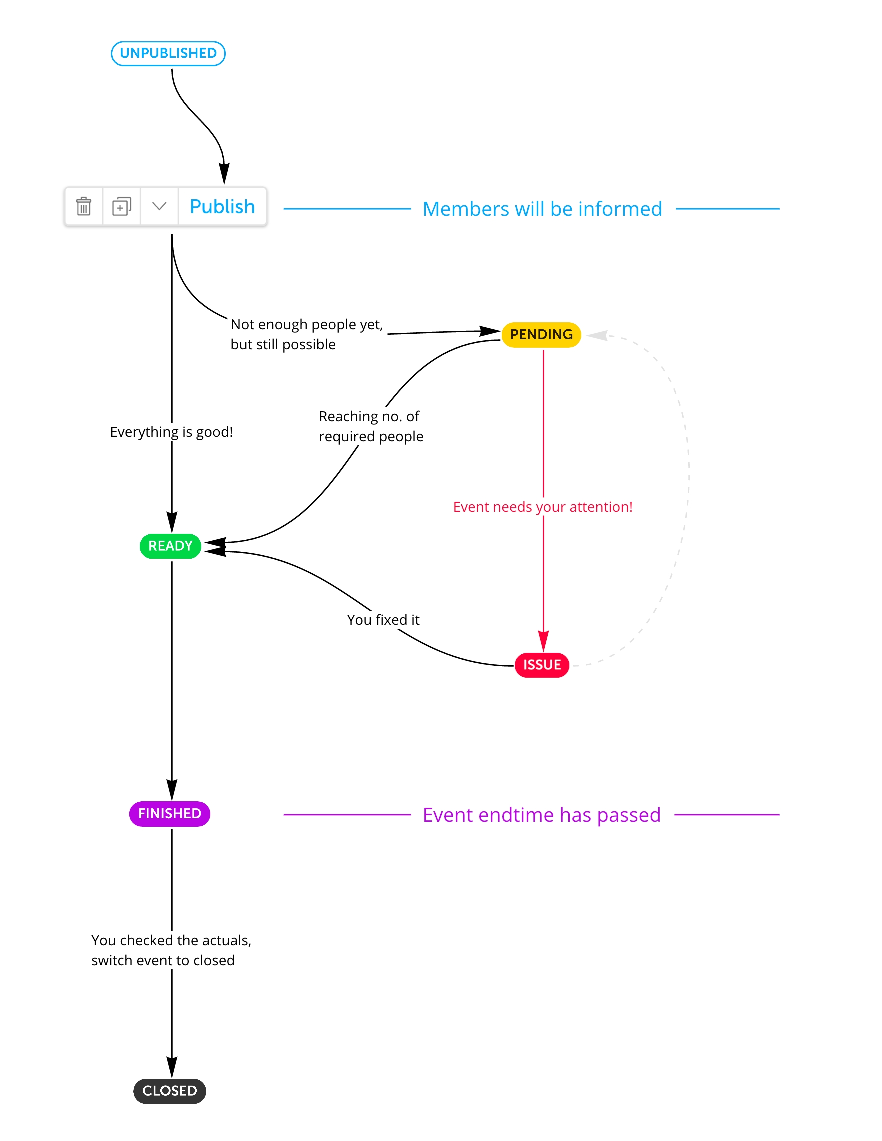 In Soon each event has a status to give you quick insights. There are 6 different status, these are: