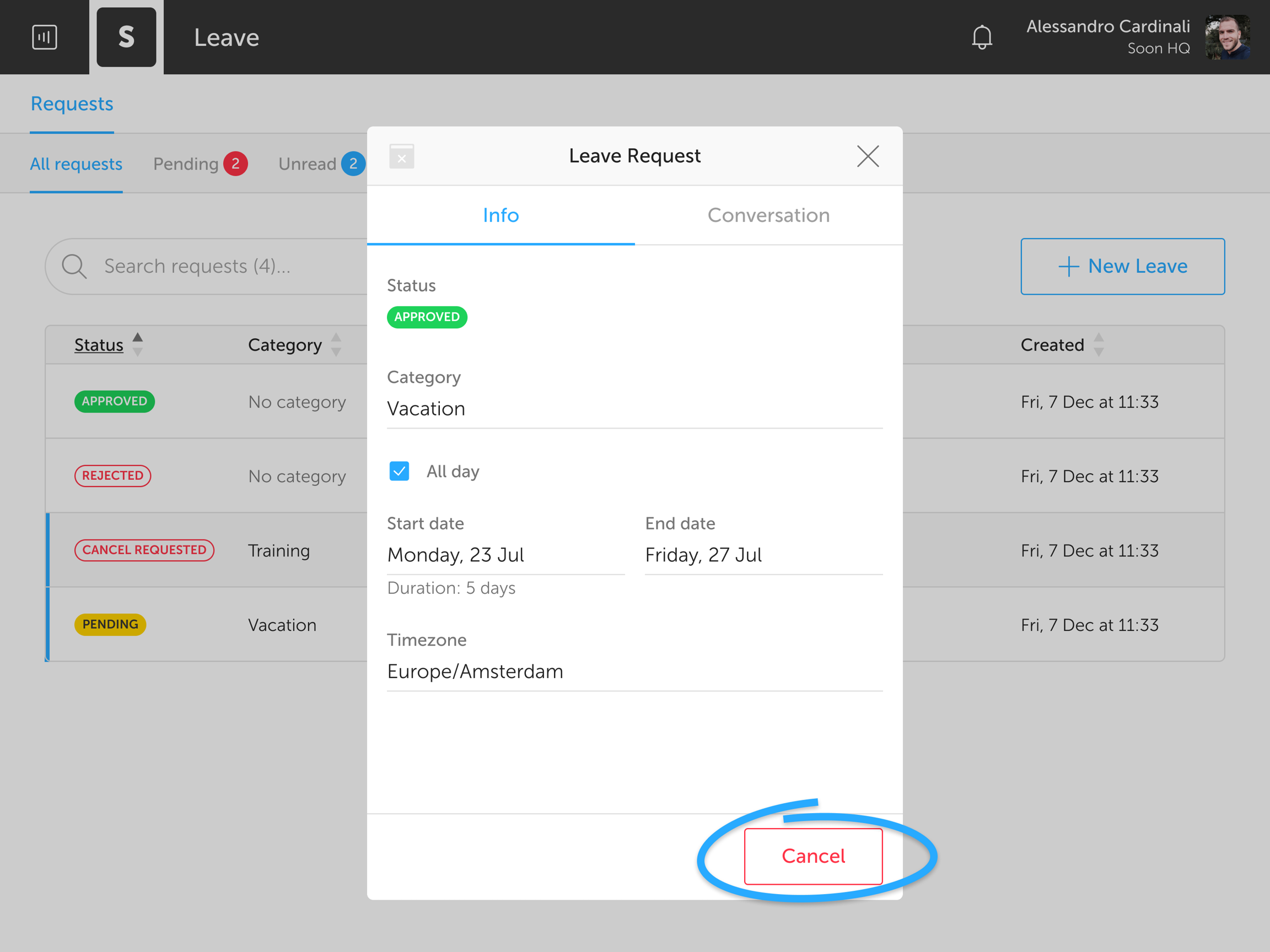 Cancelling leave requests
